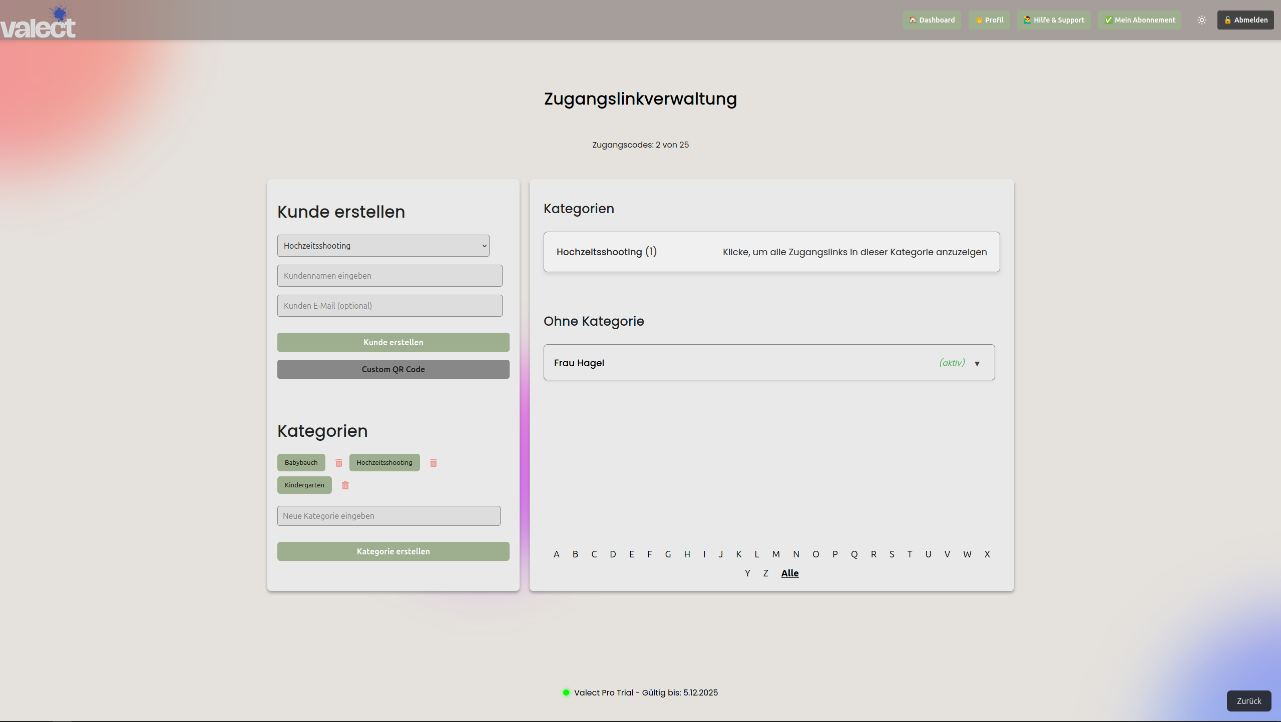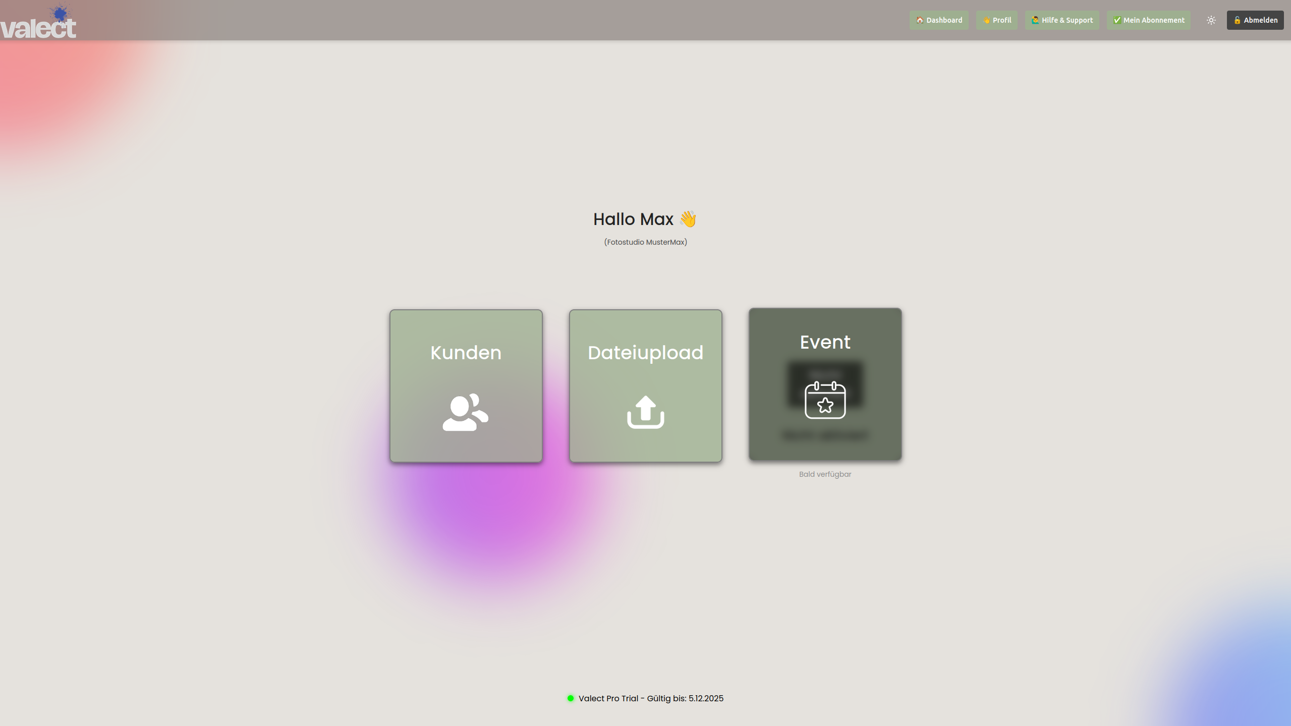 Valect ist mehr als nur ein Shopsystem – es ist eine moderne Online-Plattform, die gezielt auf die Anforderungen von Fotografen, Eventveranstaltern und kreativen Profis abgestimmt ist.