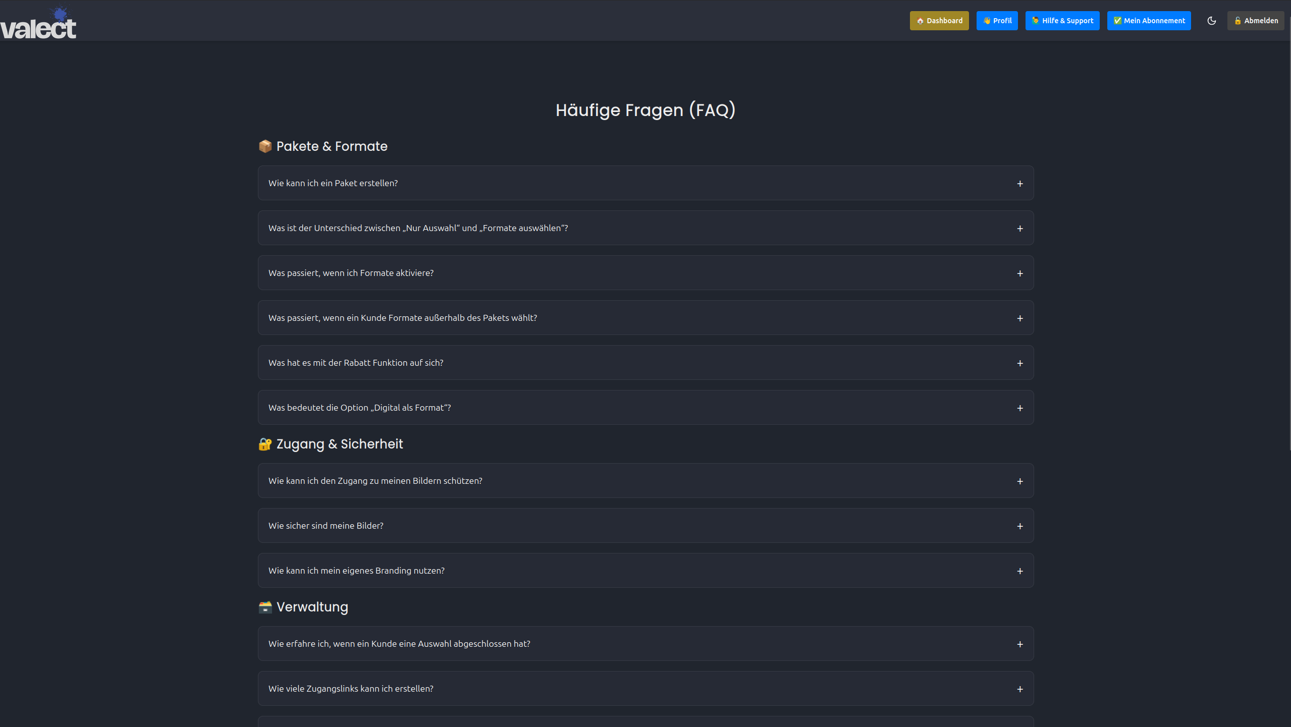 All das vereint Valect in einem modernen, klar strukturierten und einfach bedienbaren Shopsystem – optimal für Fotografen, Eventveranstalter und kreative Profis, die eine professionelle Lösung für ihre Arbeit suchen.