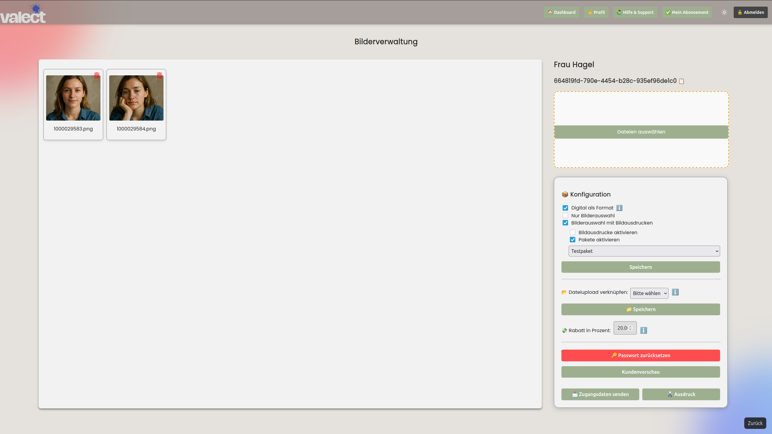 mit Valect lassen sich alle Bilder direkt und einfach an Ihre Kunden übermitteln.